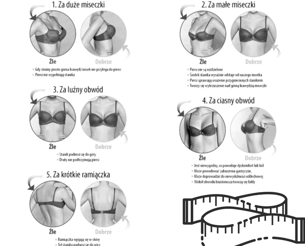Rozpoznanie nieprawidłowego pomiaru jest kluczowe dla doboru odpowiedniego rozmiaru biustonosza. Jeśli zauważysz, że wybrany stanik nie leży dobrze, uwiera lub nie podtrzymuje piersi prawidłowo, to znak, że pomiar mógł być niedokładny. W takim przypadku warto powtórzyć cały proces, zwracając szczególną uwagę na technikę i postawę.